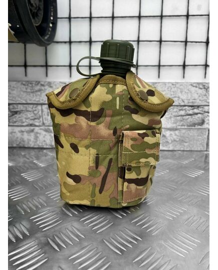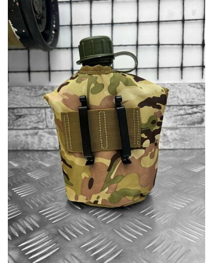 Пластикова фляга американського (США) типу в нейлоновому чохлі з невеликим зовнішнім карманом (закривається на липучку) ). Фляга виготовлена ​​із харчового полимеру, завдяки чому вона легка та безпечна для здоров'я. Кришка надійно прикріплена до фляги так, що вона не може бути втрачена. Термочохол добре підтримує температуру рідини у флязі. Чохол оснащений невеликим карманом збоку.