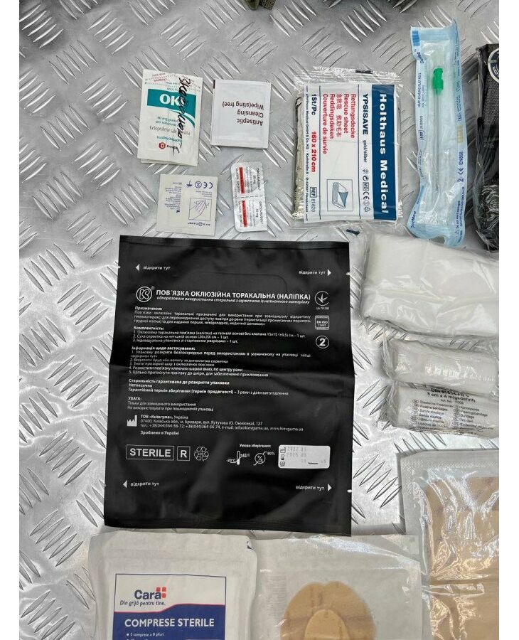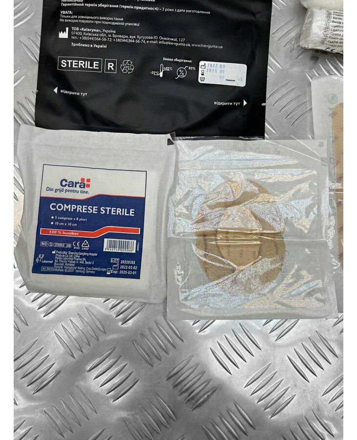 Стерилтний компресс 2 Покривало з фольги 1шт. Компресійний бандаж 1шт. Оклюзійна пов'язка 1шт. Пластир 7.5на 9.5 1шт.