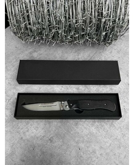 Відмінний помічник у поході, а також для риболовлі, туризму, полювання тощо. Клинок з нержавіючої легованої молібден-ванадієвої сталі AUS-8, має чудові ріжучі властивості. Ця модель ножа має просту конструкцію, він міцний, надійний і безпечний. Випускається у двох модифікаціях, що відрізняються зовнішнім оздобленням та матеріалами, що йдуть на рукоятку. Усі металеві частини мають антивідблискову обробку, накладки на рукоятку із пластику з рифленою зовнішньою поверхнею. Хороший варіант для подарунка.