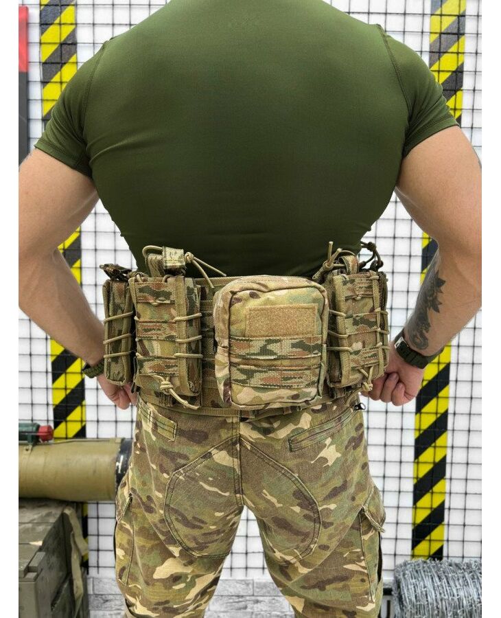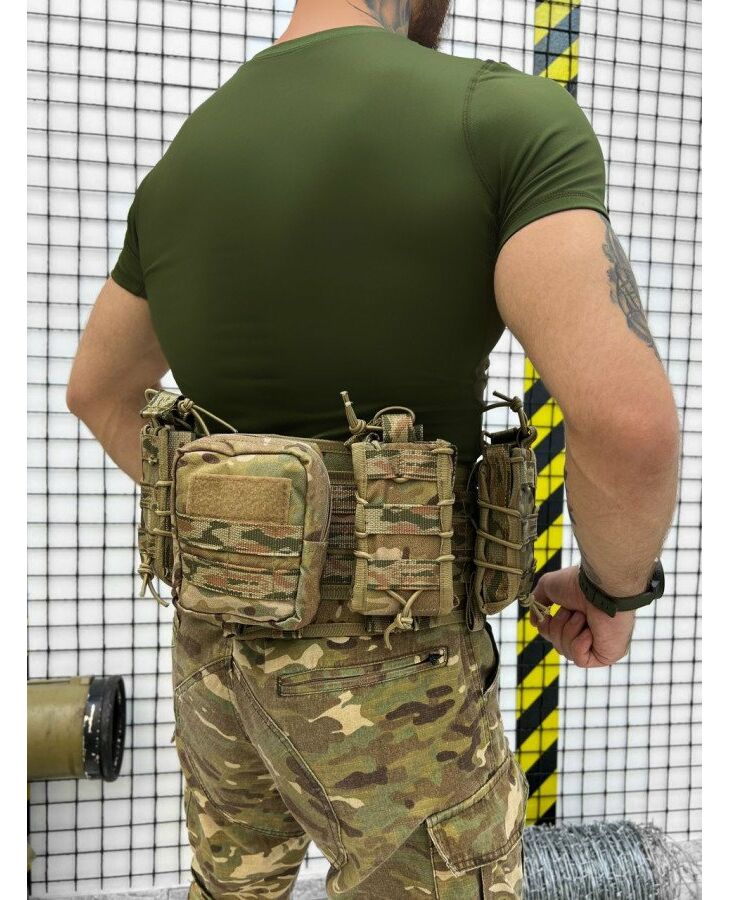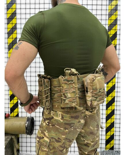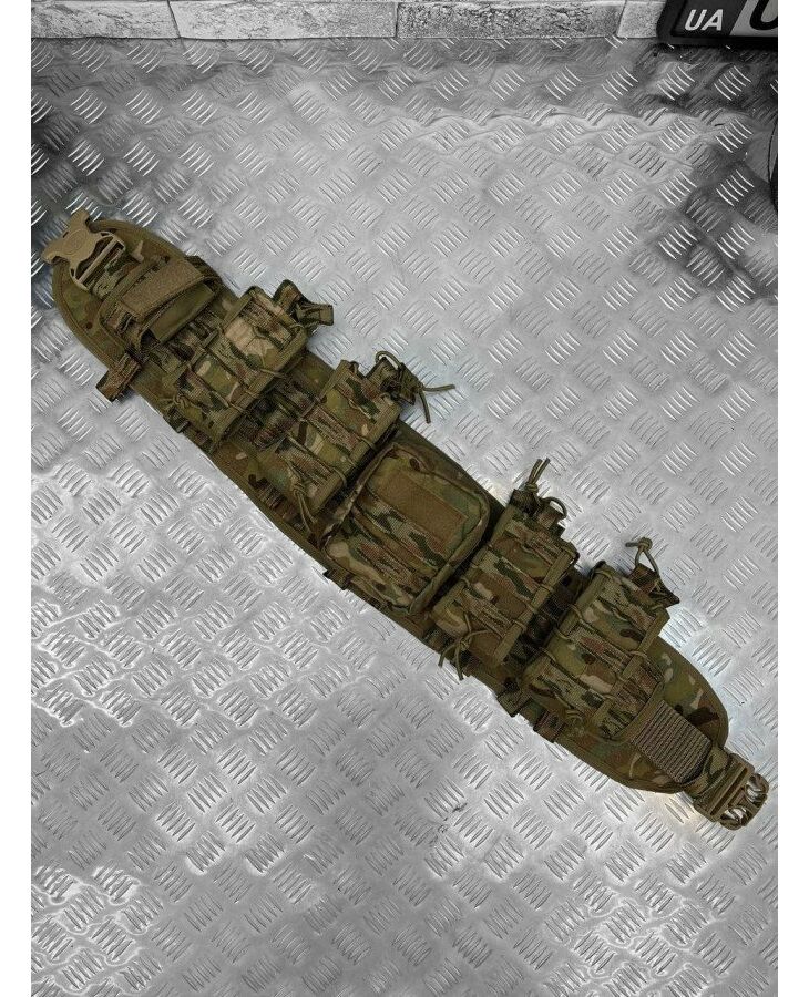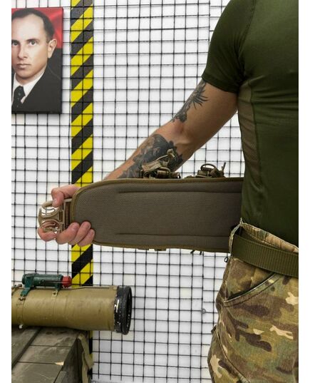 Тактичний розрузковий пояс повністю пошитий із CORDURA 900D завдяки своїм унікальним властивостям Cordura широко застосовується у тактовному спорядженні військових, правоохоронних органів спеціального призначення. Фізико-технічні характеристики тканини CORDURA 900D дуже високі, розривне навантаження становить близько 2900 Н, навантаження, що роздирає - близько 140 Н. Стійкість до зношування більше 49000 циклів. Застосовується для одягу, чохлів, сумок, тактичних рюкзаків. Вироби, пошиті з матеріалів CORDURA, безперечно пройдуть випробування часом та відстанню. CORDURA – це міцність, надійність та стиль. За показниками міцності вона поза конкуренцією. Весь пояс по колу на (M.O.L.L.E) – модульне полегшене (легковагове) розвантажувальне спорядження») – носиться система кріплення спорядження, прийнята в армії США. Розвантажувальний, тактичний пояс має 6 карманів під автоматний ріжок із еластичним фіксатором та зливними люверсами. Ззаду також є велика сумка під аптечку або інші приладдя. Плечова система регулюється по висоті.