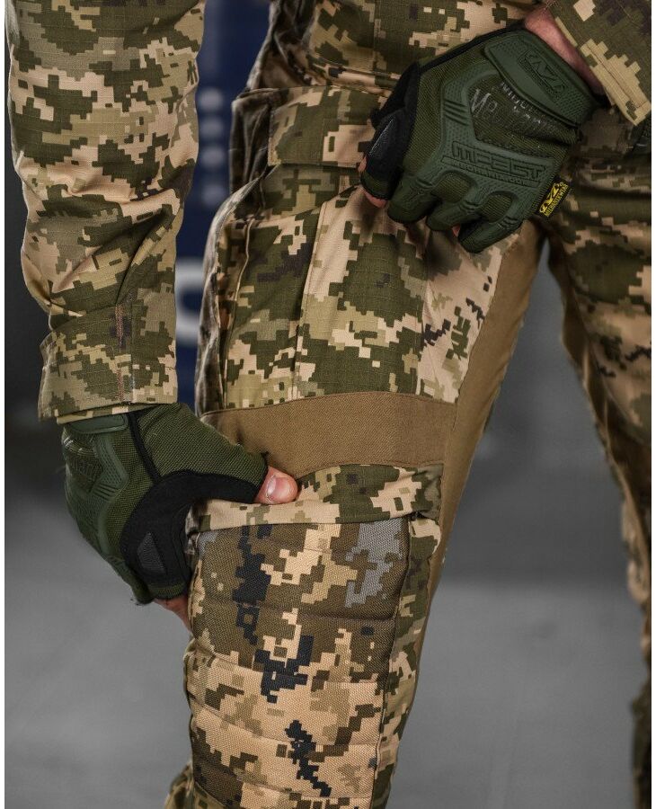 Посилені коліна з додатковим кишенею і липучки для шевронів роблять костюм ще більш практичним і універсальним.
