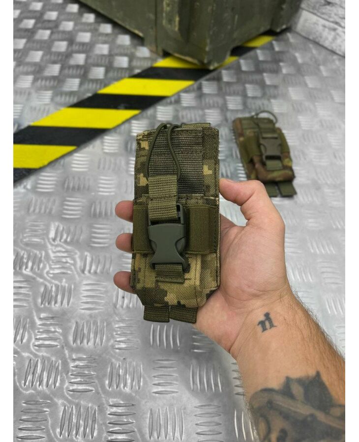 Підсумок для рації Motorola 4400/4800 – це важливий елемент спорядження сучасного бійця. Виготовлений з високоякісного матеріалу Cordura 1000D – надміцної тканини, стійкої до стирання та високих навантажень. Зручна конструкція забезпечує безперешкодний доступ до основних кнопок керування портативною радіостанцією. Кнопка РТТ та мікрофон радіостанції залишаються відкритими, що дозволить Вам використовувати радіостанцію без гарнітури. Система надійної фіксації здійснюється стропою та еластичною гумкою, що гарантує надійний захист від випадання. Підсумок кріпиться до спорядження за допомогою MOLLE інтерфейсу. Дана модель від бренду М-Тас дозволить завжди тримати засіб зв'язку під рукою.