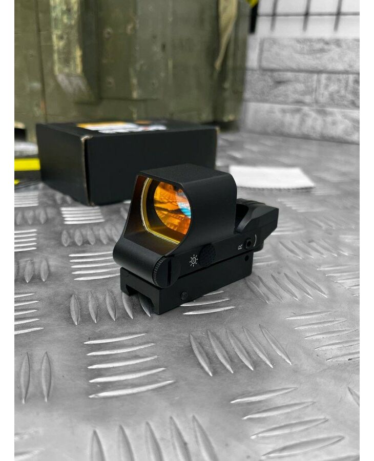 Коліматор Feyachi rs-30 reflex sight Приціл оснащений вбудованим кріпленням Weaver/Picatinny та реостатом для регулювання яскравості прицільної марки. Також можна вибрати тип та колір маркування мети. Оптичні характеристики: Збільшення: 1х Діаметр об'єктива, мм: 22x33 Поле зору (м/100м): 15.8 Покриття лінз, що просвітлюють: багатошарове покриття (Multi-Coated) Конструктивні особливості Тип прицільної марки: , 3 MOA Dot Колір прицільної марки: червоний/зелений Ціна поділу регулювання механізму поправок, кут. хв.: 1 MOA@100 yds Регулювання яскравості прицільної марки: 6 налаштувань (по 3 рівні яскравості для червоної марки) для використання в денну та нічну годину Вибір прицільної марки (4 види) Вбудоване монтування Weaver/Picatinny Багатошарове покриття лінз ) Корпус: алюмінієвий, анодований Комплектація: Приціл Захисна кришка лінзі Салфетка для чищення лінз Батарея CR2032 Шестигранний ключ Виробник-BSA Країна виробник-Китай Вес-115 г Діаметр вихідної зіниці-10 мм Діаметр об'єктива-16 мм Діаметр об'єктива-16 мм труби-37 мм Довжина кріплення-34 мм. Лінійне поле зору (м/100 м)-10 м Максимальна кратність-1 х Мінімальна кратність-1 Відбудова від паралаксу-На об'єктиві Підсвічування прицільної марки-Регульована Стан-Новий Тип-коліматорний Видалення вихідної зіниці-10 мм Колір чорний < /p>