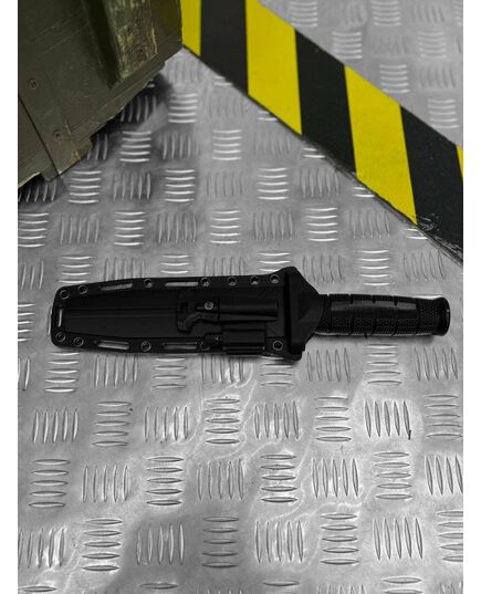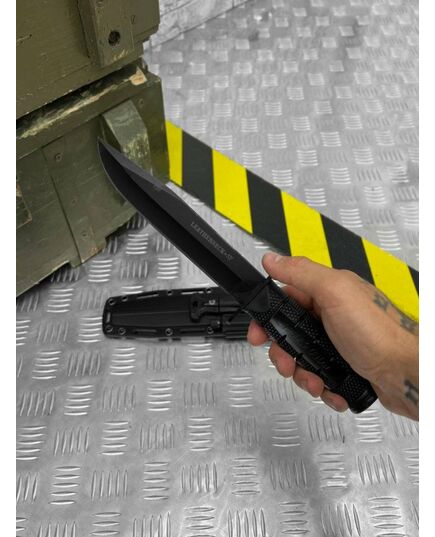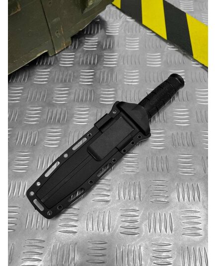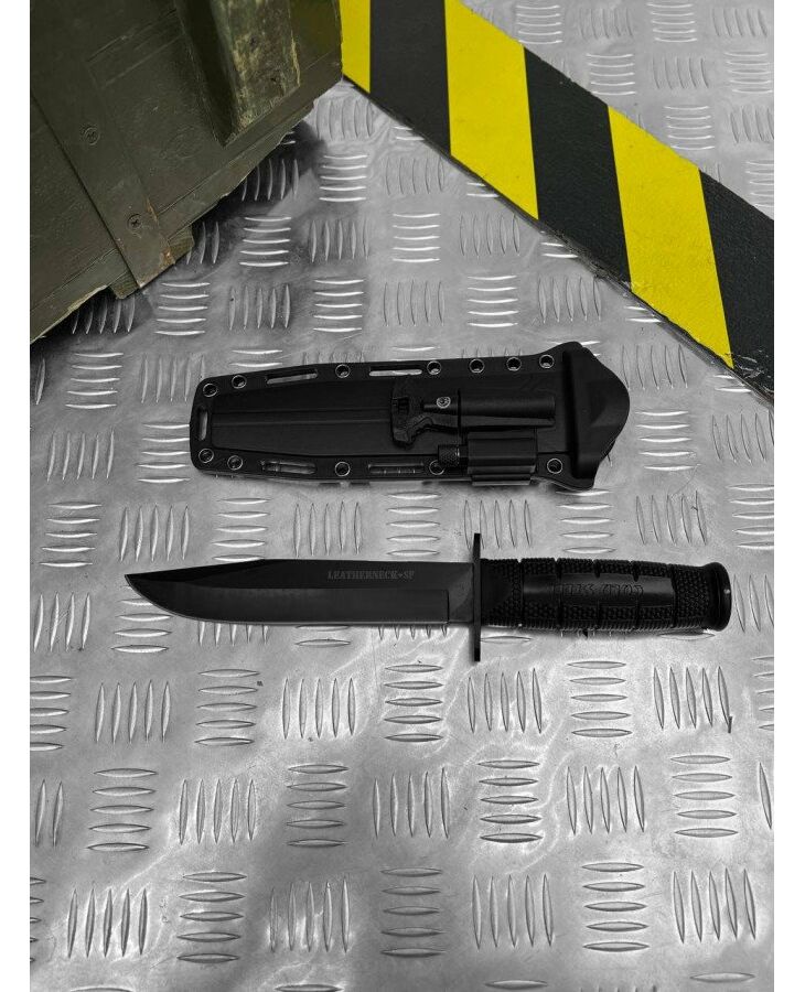 Великий військово-польовий ніж, що є сучасним розвитком класичного бойового ножа морської піхоти США, який випускався, зокрема, і Ка-Бар. Назва Leatherneck відноситься до високого шкіряного коміра з шаблею, затвердженого в 1776 році, який морські піхотинці США носили зі своєю уніформою. Комір був настільки відмінною рисою, що слово Leatherneck стало жаргонним синонімом американського морського піхотинця. Від вістря до 2/3 довжини леза проходить чітко позначене фальшлез, що знижує вагу ножа і полегшує його вбивання. Все покрите стійким до подряпин покриттям Black Powder. Це покриття підвищує корозійну стійкість і зменшує відблиски, які в деяких випадках небажані. Рукояти ножа Leatherneck має наскрізну конструкцію - по всій її довжині проходить сталевий штифт, що є продовженням леза. Оправлення спирається на відлиту під тиском рукоятку, виготовлену з комбінації еластомеру Kray-Ex та Griv-Ex матеріалу. Завдяки ергономічному профілю та ковзаній текстурі рукоятка забезпечує хороший контроль над ножем, навіть коли руки мокрі або брудні. Рукоятка закрита сталевою гардою, що перешкоджає зісковзування руки на лезо, та сталевою головкою в задній частині, яку можна використовувати як бойовий молот. або спорядження. Надійне утримання ножа в піхвах забезпечується приталеним вхідним отвором і поясною петлею, що застібається на клямку. Клинок: гладкий
