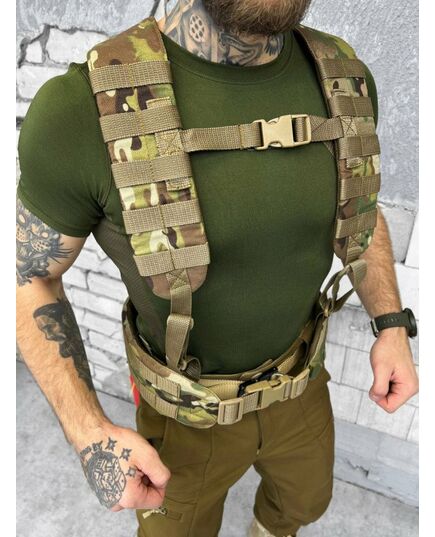 По всій довжині пояса прошитий 2 смуги системи Molly. На лямках додатково є система моллі для можливості кріплення різних підсумків, наприклад під рацію або турнікет. На спині є евакуаційна ручка. Також додатково є фіксація плечової частини на грудей за допомогою фастексу 25мм.