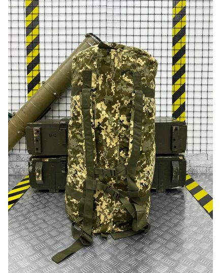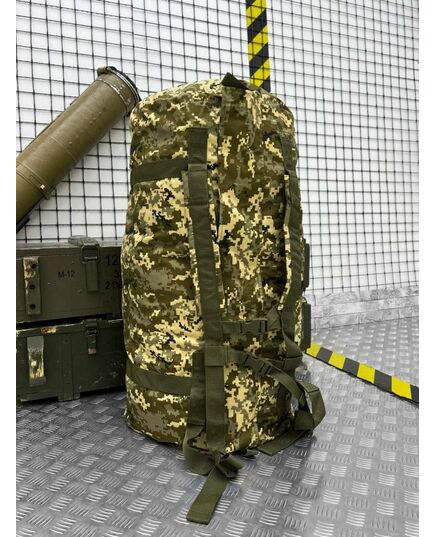 Загальний об'єм баула – 120 л. Для зручнішого використання наповненого баула передбачено фастекс, який застібає на грудях 2 лямки у положенні рюкзака.