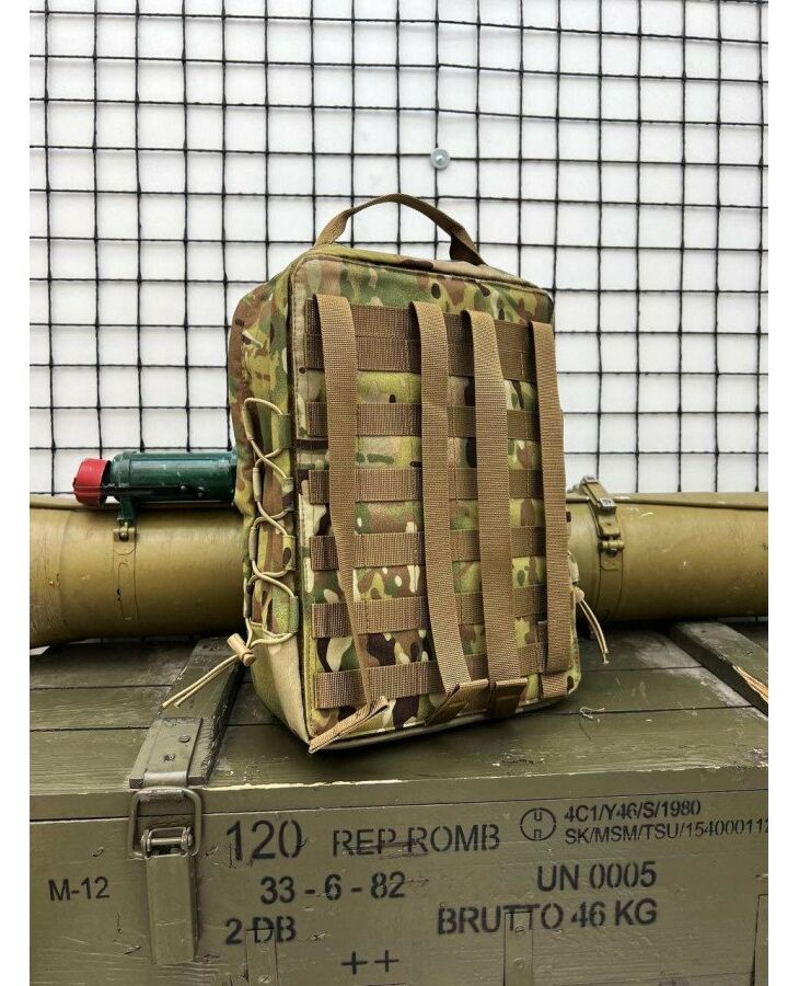 • кріплення на системі MOLLE< компресійні гумки з боків має в середині 2 об'ємних кишені може використовуватися як рюкзак для гідросистеми. має велкро панель для кріплень шевронів і патчів. закривається на блискавку, прикриту клапаном.