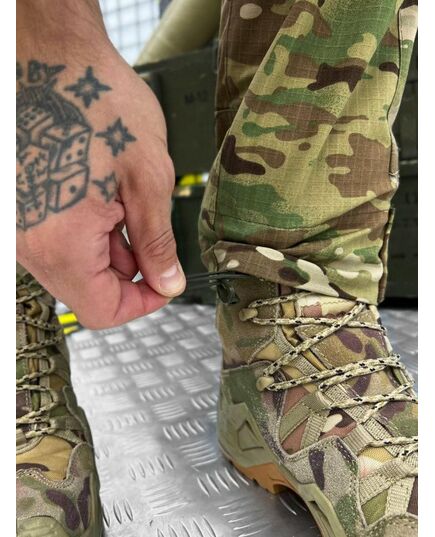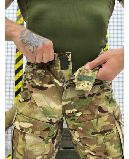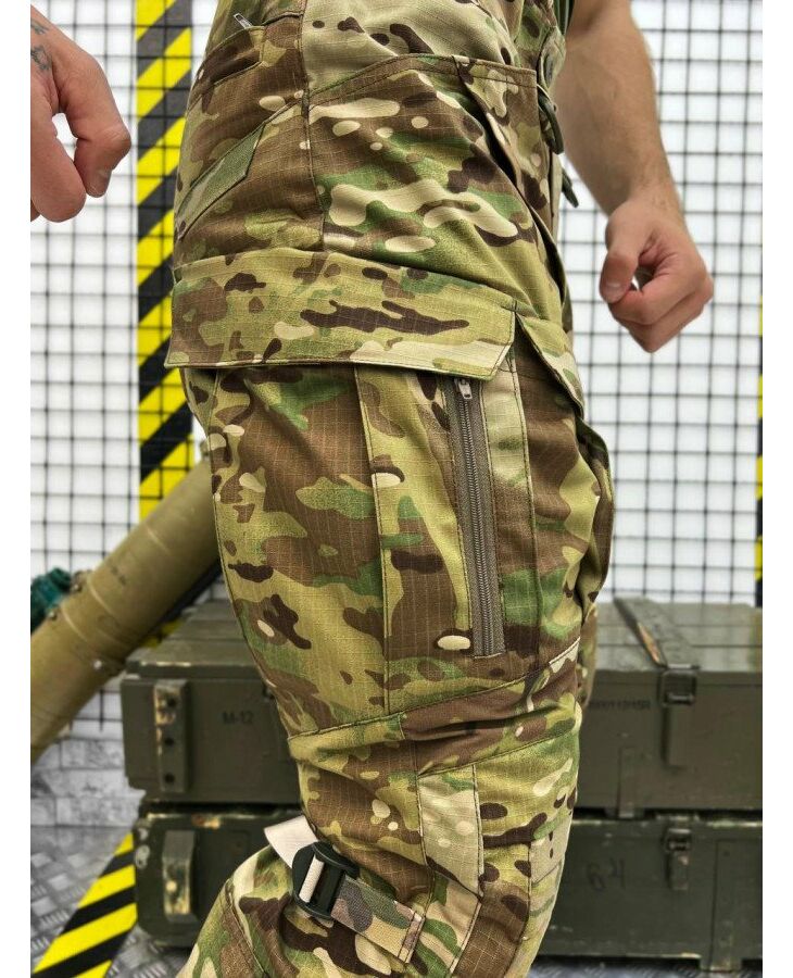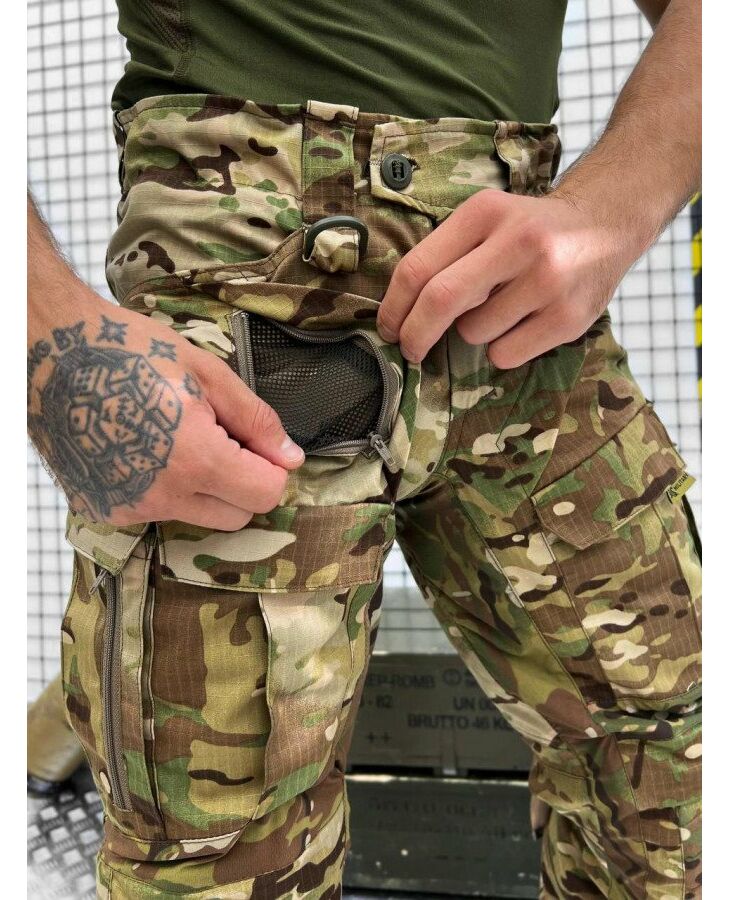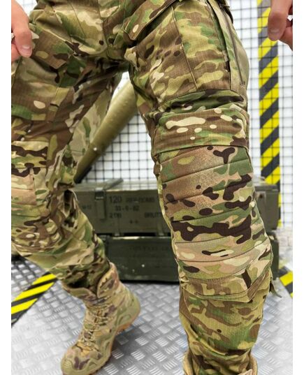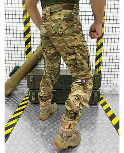 Зшиті з міцної американської тканини NYCO (50% бавовна, 50% нейлон). Це оптимальне поєднання стійкості до зносу та повітропроникності. Саме такої якості тканина йде на пошиття уніформи для військових армії США. Вставки з Flex (90% нейлон, 10% еластан) тягнуться у двох напрямках та гарантують комфорт при активній експлуатації. В області колін дизайнери бренду використовували Cordura 500D зі стаціонарно простроченими вставками з EVA-піни товщиною 2-4 мм, що забезпечить ефективний захист колінних суглобів від ударів та механічних пошкоджень. Дана модель додатково комплектується наколінниками. Завдяки продуманому крою штани не обмежують свободу рухів: у них зручно стрибати, бігати, нахилятися, присідати і пересуватися по пересіченій місцевості. Багато продуманих кишень дозволяють розмістити необхідний мінімум речей. Конструктивною особливістю даної моделі є великі подвійні кишені, які візуально не розширюють силует. Брючні кишені мають фастекс для регулювання висоти колін.