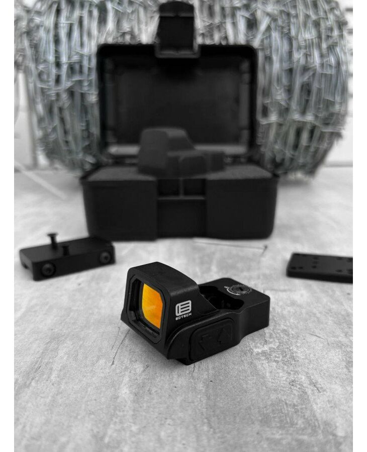 Мініатюрний коліматорний приціл EFLX™ - це новинка EOTECH в області рефлекторної оптики. Основа, призначена для використання з пістолетом, виконана відповідно до розміру основи Leupold® Delta Point Pro™ і може бути адаптована до напрямних з відповідним фрезеруванням. Міцний алюмінієвий корпус прицілу EOTech EFLX Mini має велике квадратне оглядове вікно, яке зберігає те ж співвідношення сторін, що й HWS EOTECH, що дозволяє легко та швидко знайти прицільну точку розміром 3МОА. Одна батарея CR2032 забезпечує близько 25 000 годин роботи у 5-му режимі яскравості. Приціл ідеально підходить для професійного використання, щоб швидко потрапити до мети. EFLX можна використовувати на пістолетних платформах Glock MOS (04) без додаткового кріплення. Крім того, що EFLX є ідеальним рішенням для пістолетного коліматорного прицілу, його можна використовувати як рішення зі збільшенням 1X на рушницях або гвинтівках.