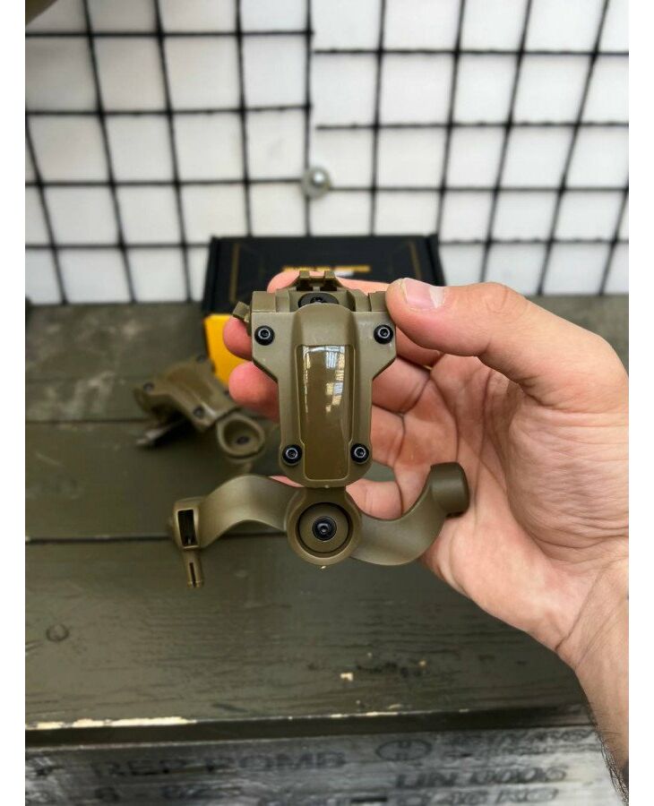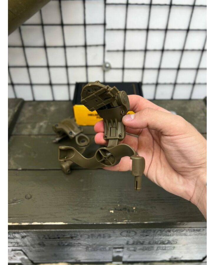 Наше кріплення підходить до шоломів типу FAST, TOR-D, ACH MICH та інших шоломів з рейками ARC або Wendy M-LOK. Поворотна модель виготовлена з ударостійкого пластику та сталі, що забезпечує максимальну міцність та надійність кріплення. >