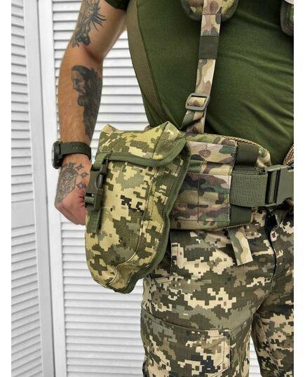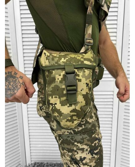 Внизу є зливний отвір. Спосіб закріплення лопати на спорядження за допомогою системи MOLLE.