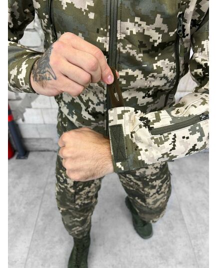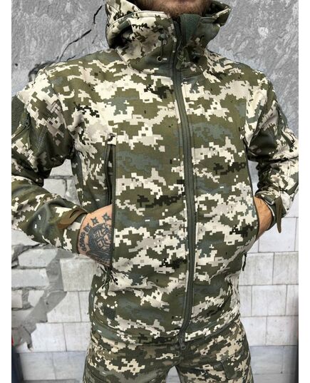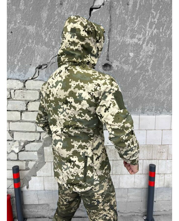 Куртка Soft Shell виготовлена з міжшарової поліуретанової мембрани, яка захищає від негоди. Усередині тонкий фліс.