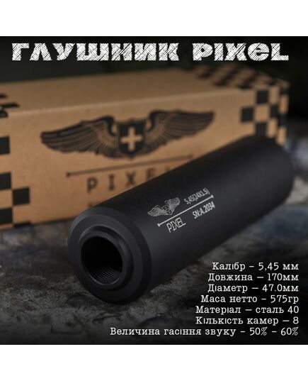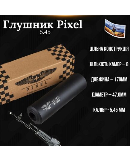 Глушитель PIXEL является военным устройством выполненным по ТУ и рассчитан на максимально возможные нагрузки.