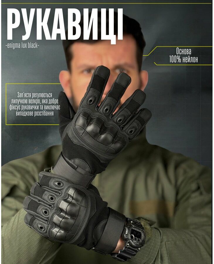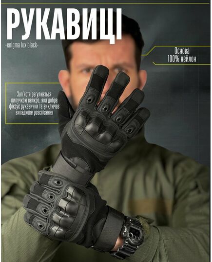 Тактичні рукавички чудово підходять для будь-яких видів завдань – полювання, охоронних заходів та конкретних бойових завдань. Вони поєднують оптимальний захист кісточок та комфорт носіння. Основа рукавичок зроблена зі 100% нейлону. Зап'ястя регулюється липучкою велкро, яка добре фіксує рукавички та виключає випадкове розстібання. На долоні є підсилювальна накладка з натуральної шкіри, що забезпечує щільний хват і завдяки цьому зброя та різні інструменти не вислизають із рук навіть мокрими.