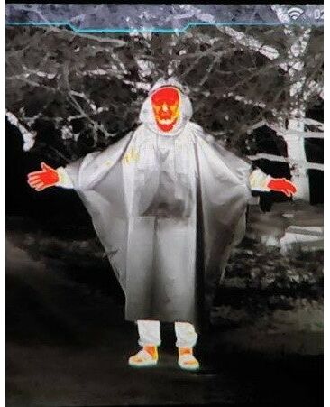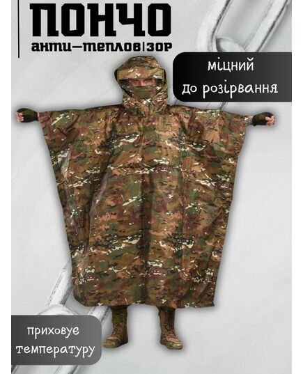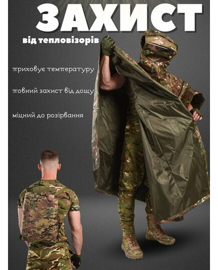 Тобто не чекайте, що силуету пончо взагалі не буде видно (дивіться на останні фото). Не буде в першу чергу теплового свічення тулоба людини, по-друге = силует тулобу сховаєте в ландшафт. три кулі не щильно зєднаних + конструкція самого пончо забезпечує рух повітря).