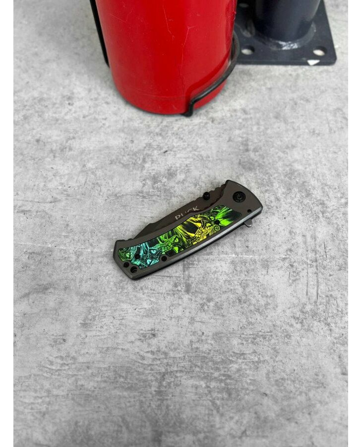 Тип замку - Liner-lock (лінійний); пружний викид клинка.