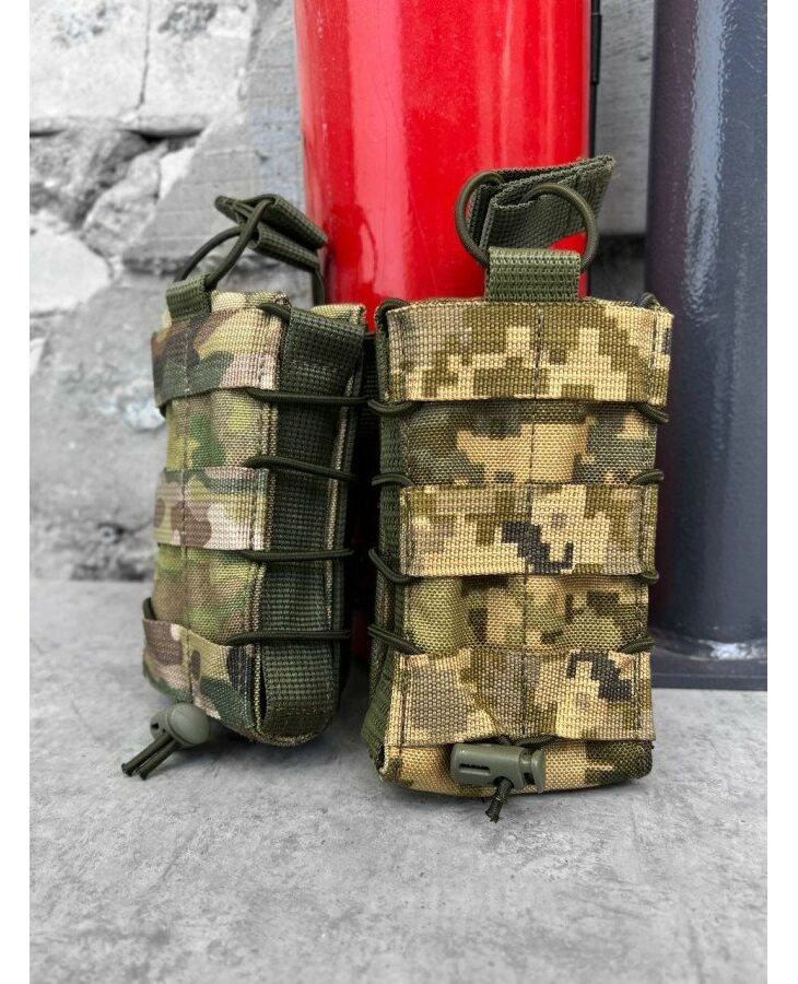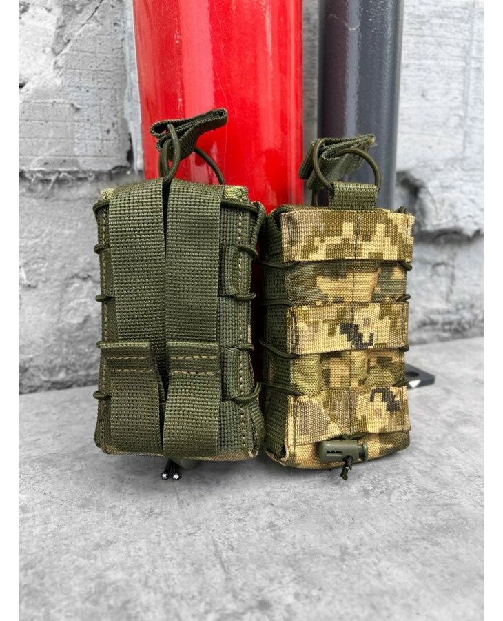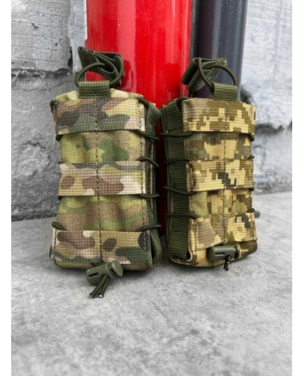 - Сила стиснення магазину регулюється шнурком-гумкою з якісним фіксатором, яким стягнуть підсумок. Зверху є додатковий знімний фіксатор на резинці.