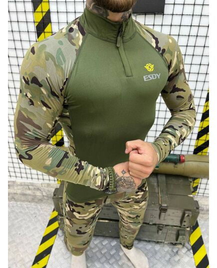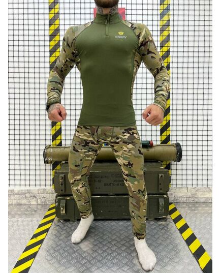 Термобілизна чоловіча ESDY Camo шиється з швидкої еластичної тканини. Така тканина зберігає суху шкіру при виділенні поту, добре дихає, приємна на дотик. Внутрішній фліс має гарний ефект збереження тепла. Підходить для використання при заняттях активними видами спорту на вулиці, а також для повсякденного носіння під одягом.