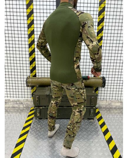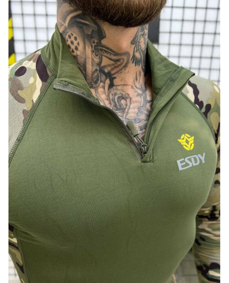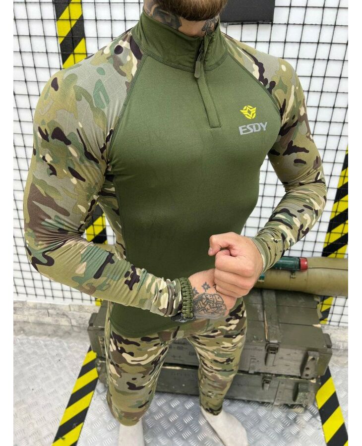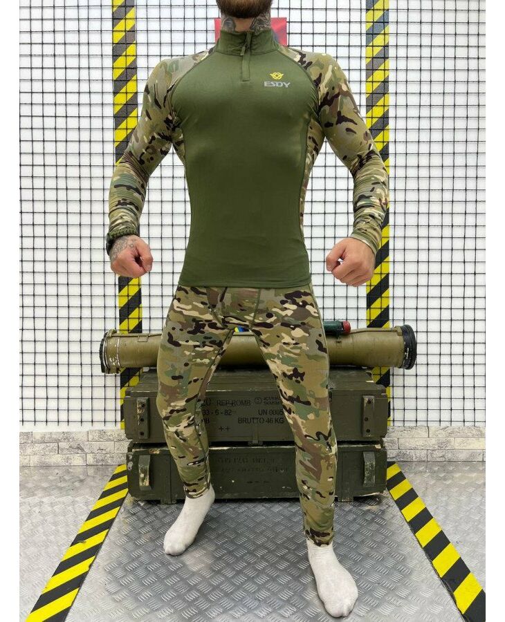 Термобілизна чоловіча ESDY Camo з плямистим принтом природного кольору. Для додаткового утеплення в холодну пору року. В комплект входять рашгард і тайтси.