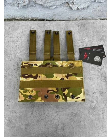 Результат потрійний еластичний відкритого типу для магазинів Multicam призначений для надійної фіксації та зберігання магазинів серії АК/AR. Підсумок створений для використання в комплекті бойового індивідуального екіпірування, обладнаного модульною системою кріплення знімних підсумків, сумісною із системою MOLLE.