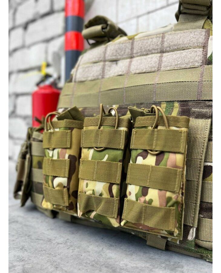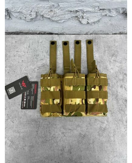 Підсумок виготовлений із міцної нейлонової тканини 1050D. Міцна тканина стійка до стирання і розривів, має водовідштовхувальні та водонепроникні властивості, термостійкість, брудостійкість і простоту у догляді. Підсумок має відкриту конструкцію та призначений для розміщення 3 магазинів. Надійна фіксація магазинів забезпечується за рахунок строп та еластичної гумки, гарантуючи захист від випадання. За допомогою інтерфейсу Molle, зробленого за технологією Laser Cut, легко кріпиться до тактичного спорядження за допомогою велкро-липучок, пряжок, гачків. Підсумок служить необхідною деталлю тактичного спорядження військовослужбовця, забезпечивши швидку перезарядку.
