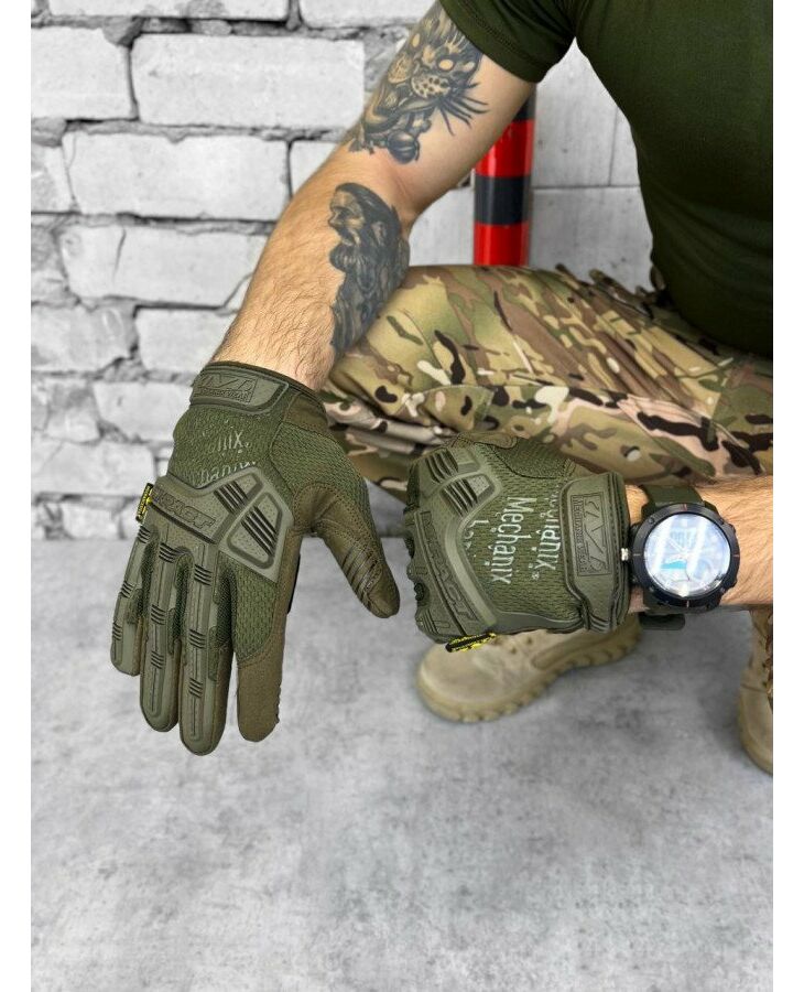 Модель M-Pact® виготовлена з високоміцної синтетичної шкіри товщиною 0.8 мм та вставок з еластичного та дихаючого матеріалу TrekDry™. Синтетична шкіра дозволяє використовувати смартфон та інші сенсорні пристрої, не знімаючи рукавичок. Додатково долоня посилена вставками з матеріалів D3O® та Armortex®. Вставки D3O® призначені для розсіювання енергії ударів та вібрацій, тим самим знижує втому рук. Вони виготовлені з термопластичної гуми (TPR), сертифікованої за стандартом EN 13594. Для професійного захисту рук рекомендується використовувати перевірені сертифіковані рукавички. Такі вироби можуть забезпечити захист рук та пальців у критичній ситуації. Модель M-Pact® сертифікована відповідно до міжнародного стандарту EN 388:2016 – 2121XP, який підійде для використання в місті, на стрільбищі та інших завданнях.