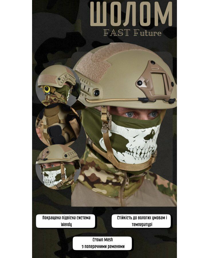FAST Future Assault Shell Helmet – шолом NIJ IIIa класу забарвленими вставками, що має захист від поразок. Балістичний шолом – спеціальна каска, призначена для захисту голови. Вона зручна, надійна і довговічна, що робить її хорошим варіантом для професійного екіпірування.