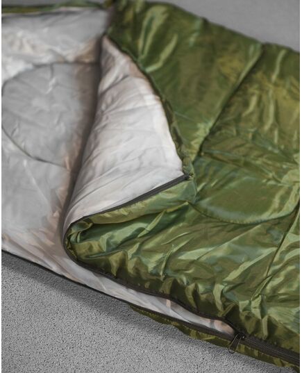 Зручність спального мішка полягає також і в тому, що його можна використовувати як ковдру — він повністю розстібається на бічній та нижній стороні.