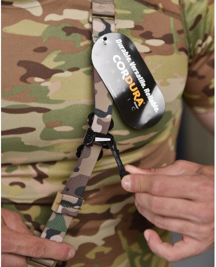 Збройовий мультиточковий ремінь з м'якою підкладкою плеча може бути використаний як одноточковий або двоточковий завдяки конструкції карабінів.