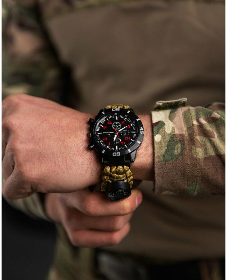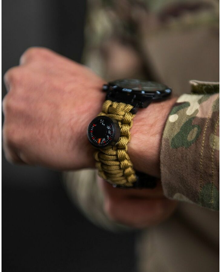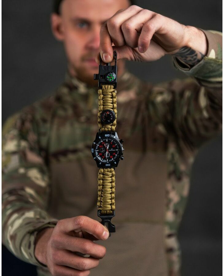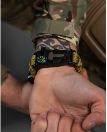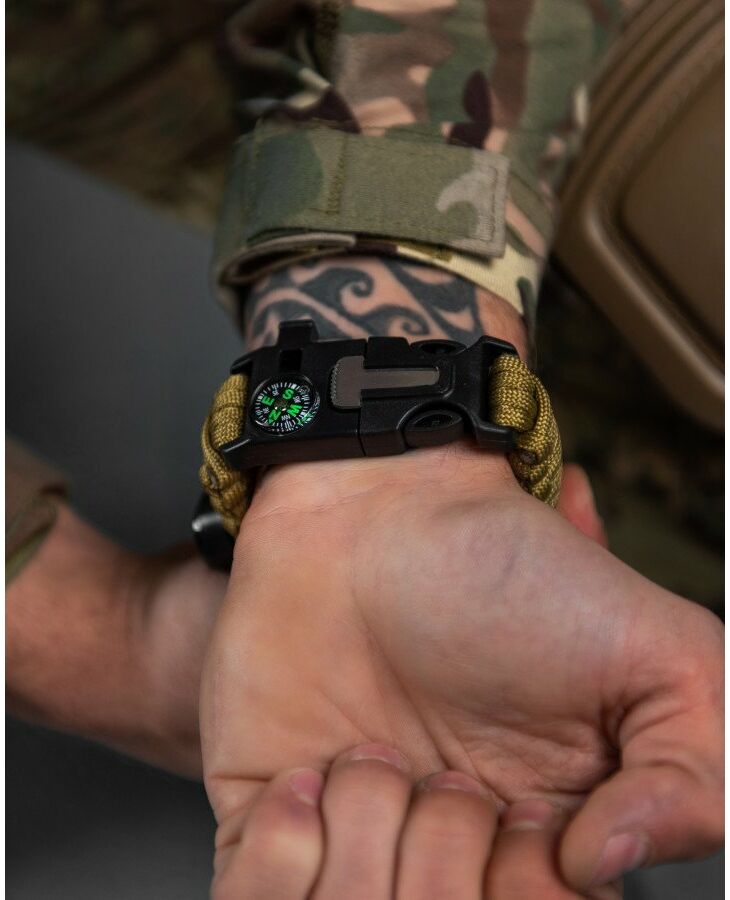 Браслет із паракорду – це довгий шматок шнура, красиво оформлений у вигляді стильного браслета. Такий браслет можна носити на вулиці міста, на роботі, у клубі, чого не скажеш про мотузку мотузки на поясі або через плече. Ви можете надіти браслет в ліс, гори, шашлики і т.д. Браслет важить трохи, не стискує руху, і Ви самі того не помічаючи, завжди маєте під рукою надійного помічника людини – мотузку. Такі браслети виживання носять американські військові, туристи та екстремали по всьому світу. >