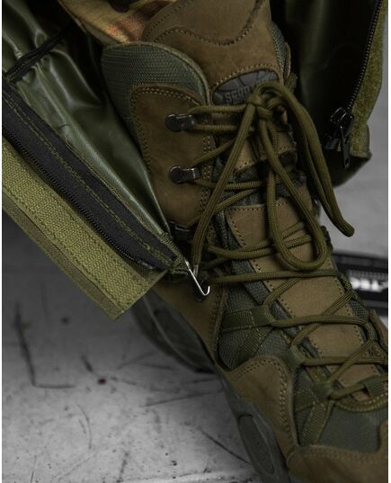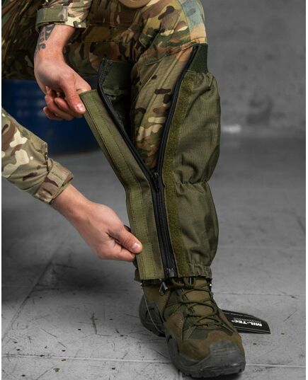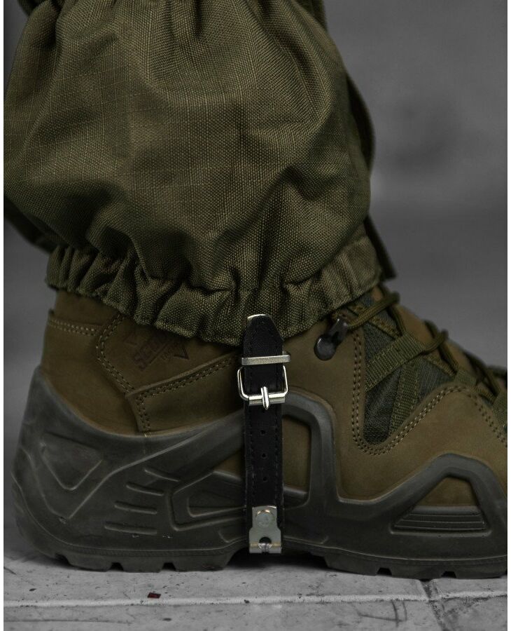 Протектори виготовлені з вологостійкого та стійкого до стирання поліуретанового покриття з поліестеру. У моделі використовують з'єднання RipStop, що підвищує стійкість матеріалу до розривів. Зручному та швидкому одязі сприяє застібка-блискавка, спереду та захищена планкою. Широке регулювання дозволяє точно підігнати під взуття.
