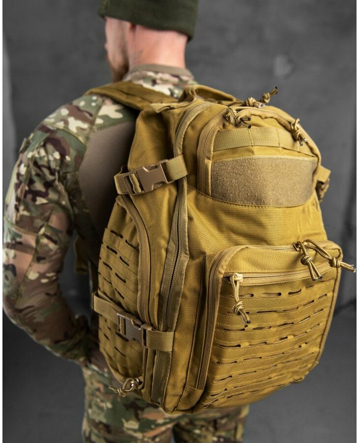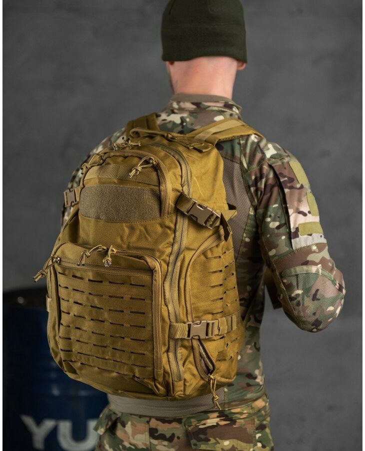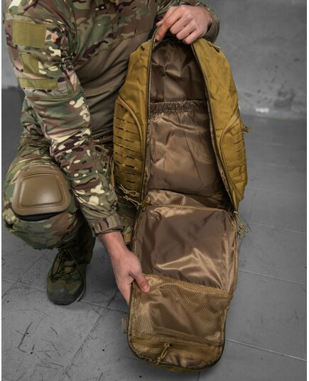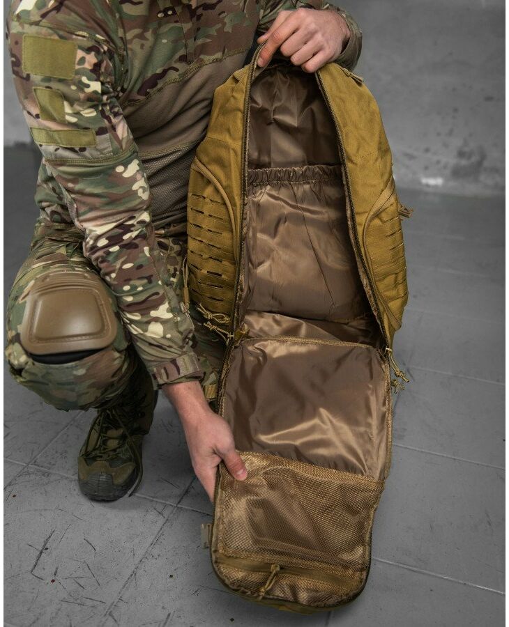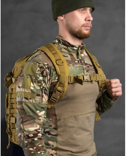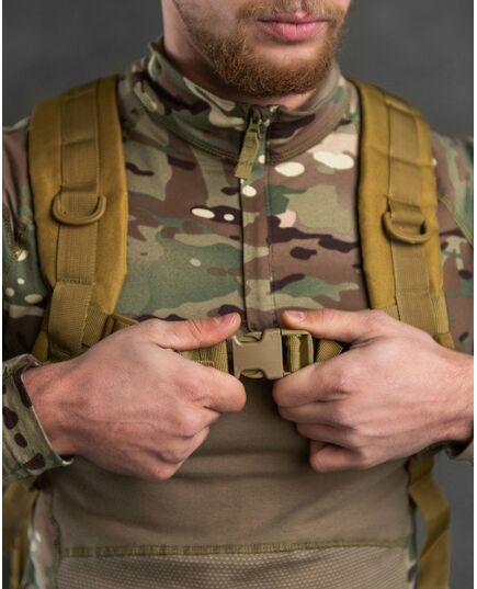 Незамінна річ, що дозволяє зручно розмістити все необхідне та одночасно залишити руки вільними. Він буде корисний не лише у військових цілях, а й у мирний час, і чудово підійде для подорожей, полювання, риболовлі та інших заходів на свіжому повітрі. Рюкзак виготовлений з сучасного високоякісного матеріалу - оксфорду, довговічного, стійкого до подряпин, стійкої води та бруду. Рюкзак має 4 великі кишені та безліч дрібних внутрішніх відділень, що дозволяють найкращим чином розмістити весь вміст та підтримувати порядок. Відділення закриваються на блискавці, як додаткові кріплення є ременями із застібкою фастекс. Максимально ергономічний дизайн із дихаючою сітчастою спинкою, регульованими плечовими ременями та додатковими ременями на поясі та грудях дозволяє рівномірно розподілити вантаж.