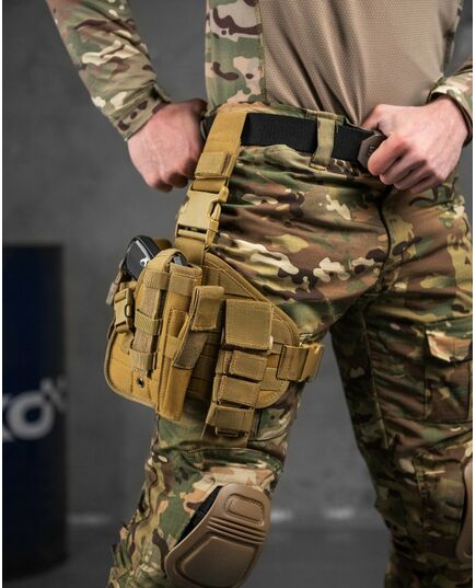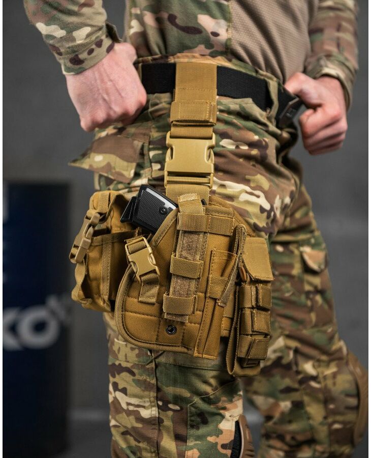 Настегна тактична кобура для пістолета Tactic універсальна кобура на пояс з кишенею під магазин кайот ВТ7585