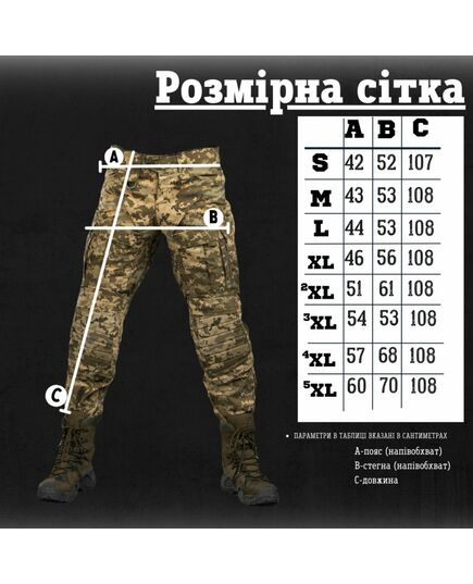 Завдяки продуманому крою штани не обмежують свободу рухів: у них зручно стрибати, бігати, нахилятися, присідати і пересуватися пересіченою місцевістю.
