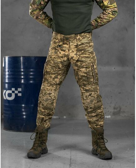 Пошиті з міцної американської тканини NYCO (50% бавовна, 50% нейлон). Це оптимальне поєднання стійкості до зносу та повітропроникності. Саме такої якості тканина йде на пошиття уніформи для військових армії США. Вставки з легкої тканини Flex (90% нейлон, 10% еластан) тягнуться у всіх напрямках (4-way stretch) та гарантують комфорт при активній експлуатації. В області колін дизайнери бренду використовували Cordura 500D зі стаціонарно простроченими вставками з EVA-піни товщиною 2-4 мм, що забезпечить ефективний захист колінних суглобів від ударів та механічних пошкоджень. Дана модель додатково комплектується наколінниками.