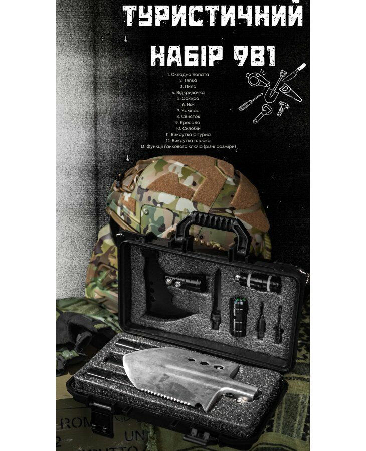 Багатофункціональний туристичний набір 9в1 з лопатою сокирою та ножем кейсе портативний для кемпінгу туризму