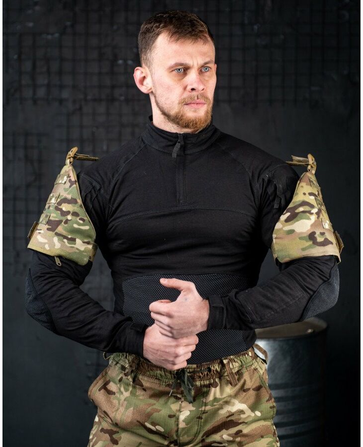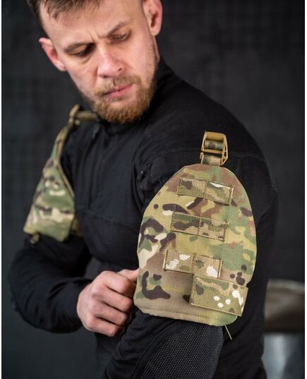 | Особливості: | - комплектується балістичними пакетами 1А; - кріпиться на плечову платформу плитоноски комплектується з балістичними пакетами 1А ; - висота кріплення регулюється вертикальною стропою з велкролипучкою; - налаштовується за обсягом руки і фіксується спеціальною горизонтальною стропою; - не перешкоджає рухам; – збільшує площу захисту тіла. |