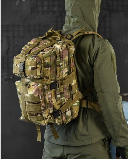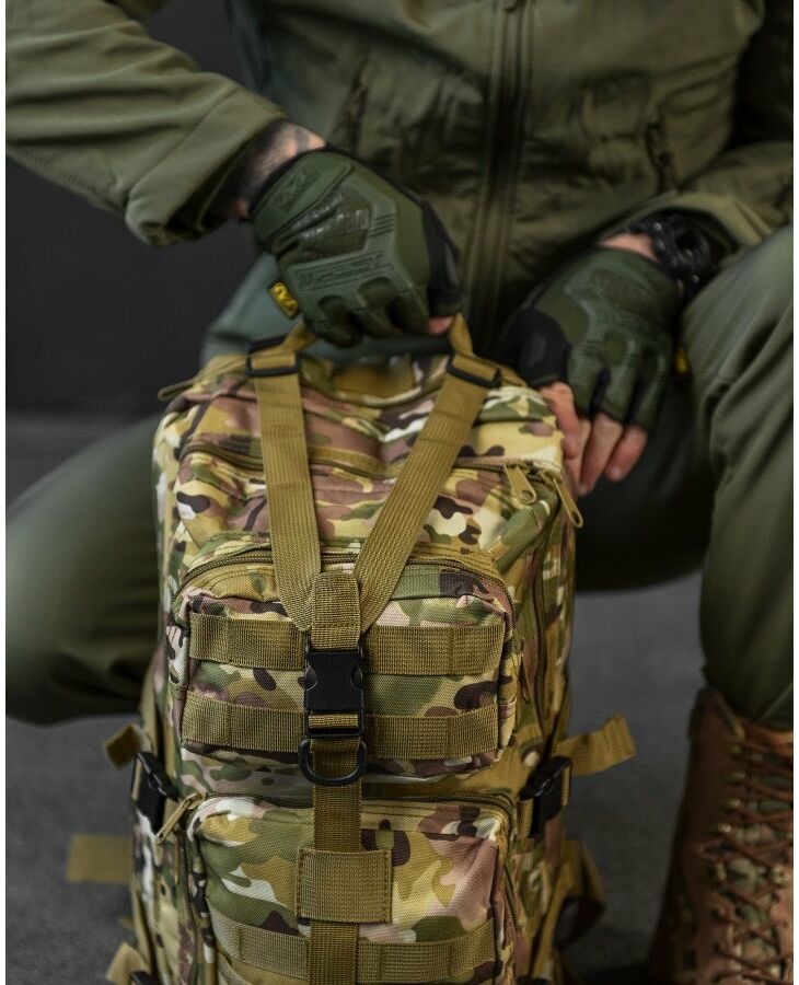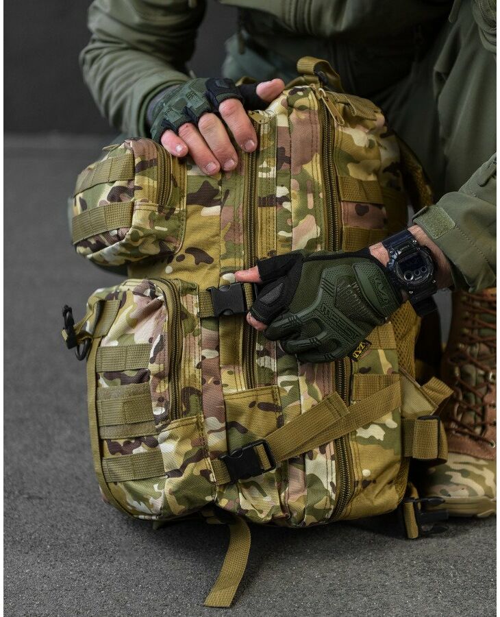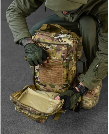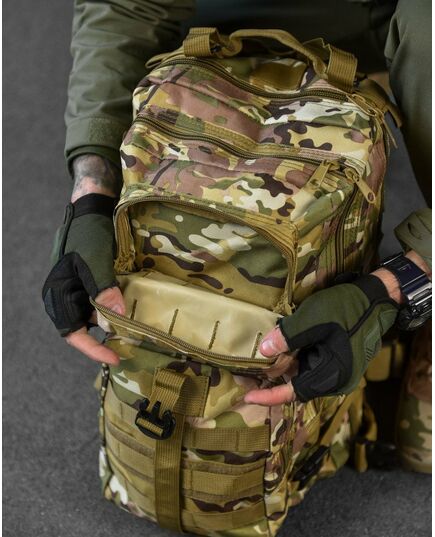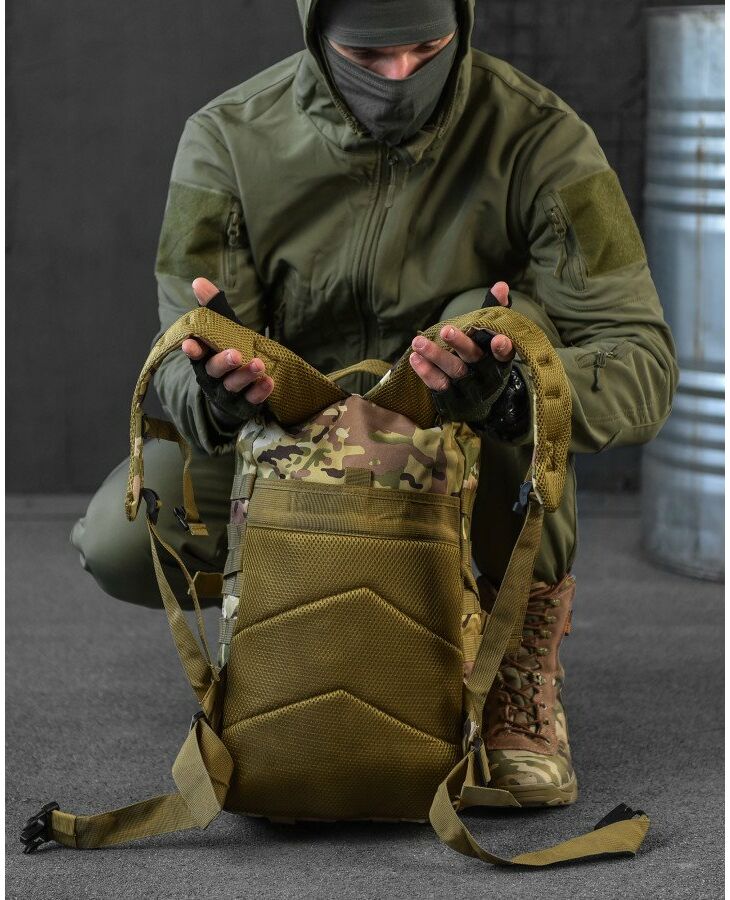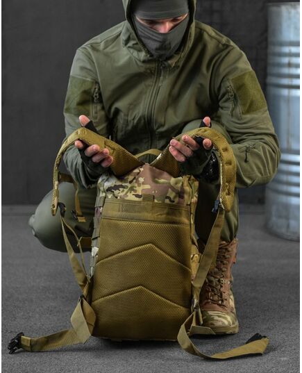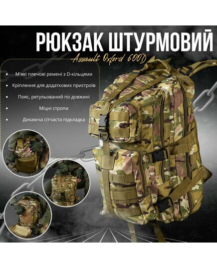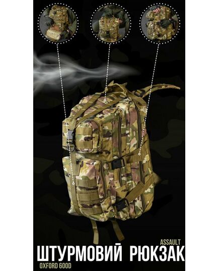 Тактичний чорний рюкзак Assault Oxford 600D виконаний з міцних вологозахисних синтетичних тканин Oxford. Ергономіка рюкзака та застосовувані матеріали дозволяють зберігати його форму незалежно від завантаження. Зручне та надійне кріплення ременів та лямок сприяє надійній фіксації рюкзака на спині та комфортному його використанню навіть при необхідності швидко пересуватися. . Плечові ремені додатково посилені, а бічні кишені сприяють зручному використанню рюкзака.