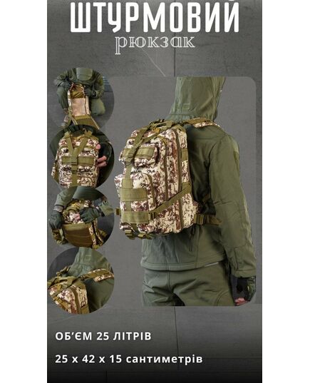 Тактичний рюкзак штурмовий 25л sahara ВТ6616