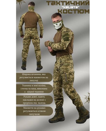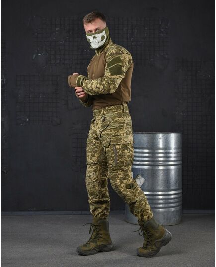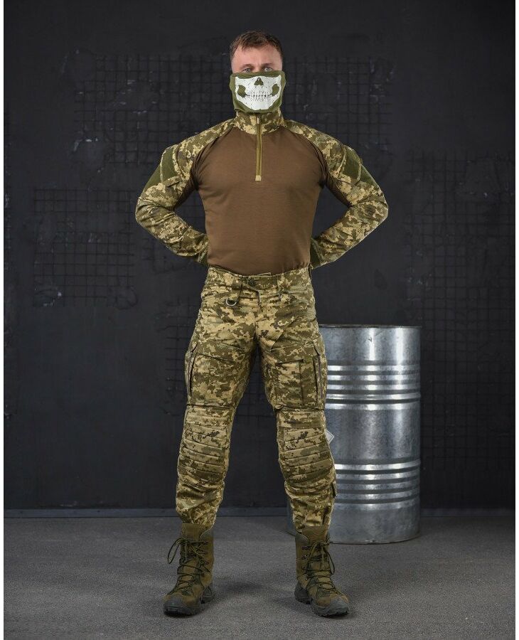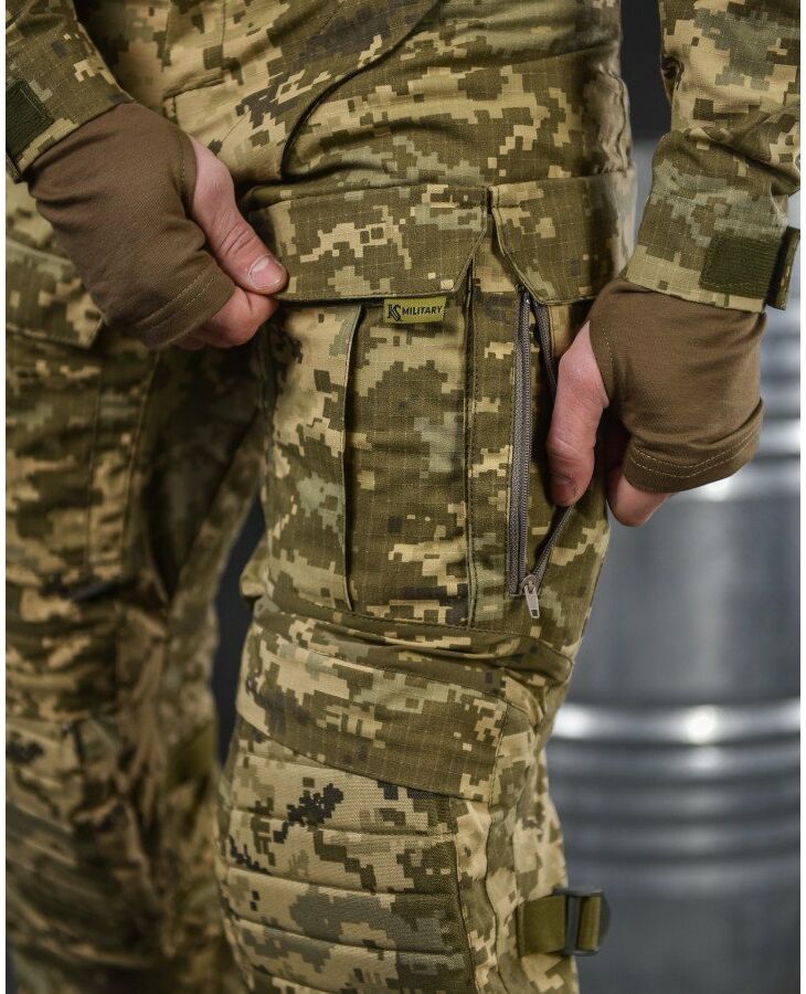 - Тканина в зоні коліна, стегна та паха, виконана з еластичної та міцної тканини - NANO FLEX, яка дозволяє при виконанні активних рухів розтягуватися в основних зонах навантаження. li>У штанях присутня - 10 основних кишень, у зоні стегна присутні накладні кишені з липучками, де розміщена гумка для фіксації під АК/РПК