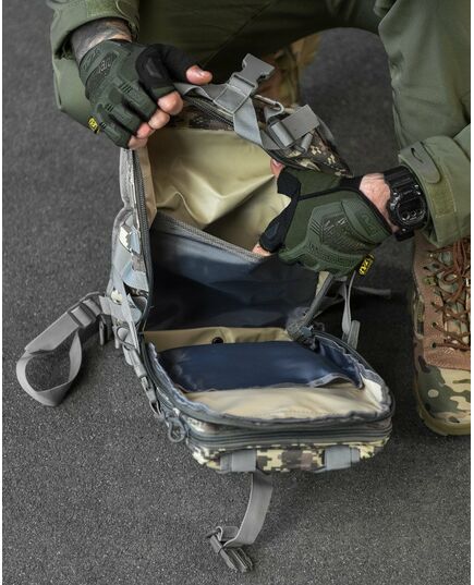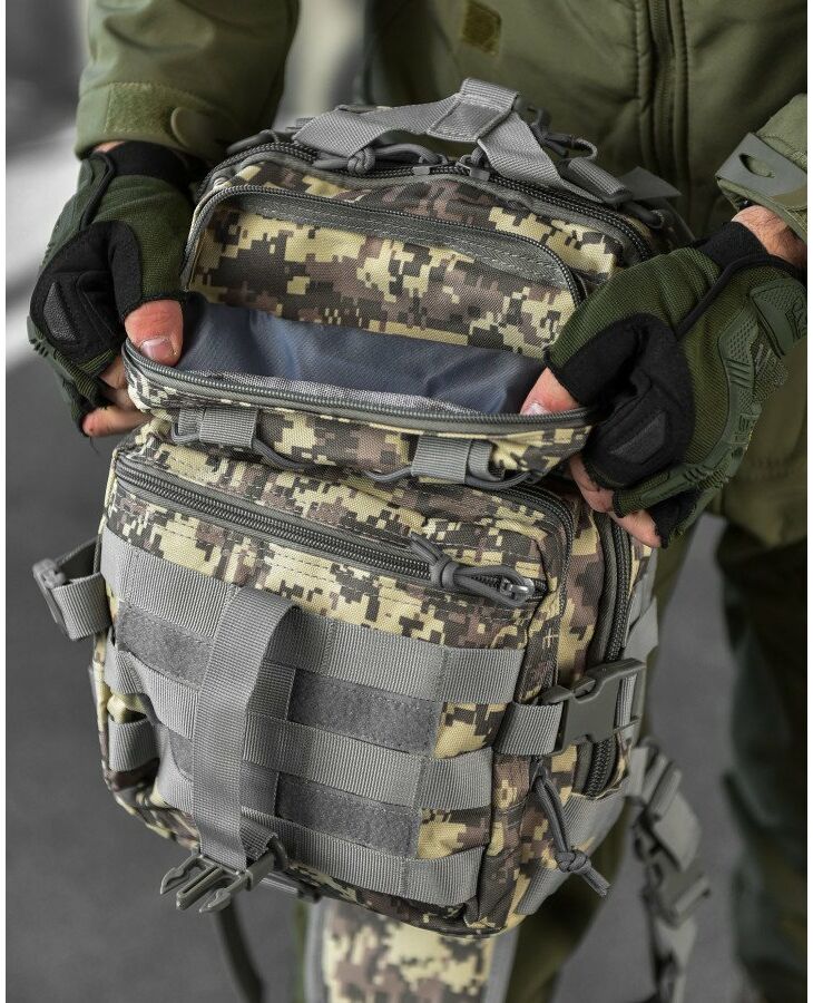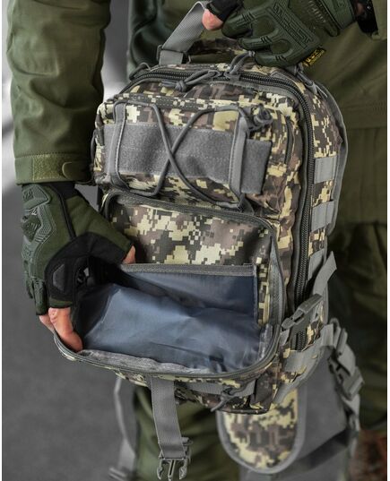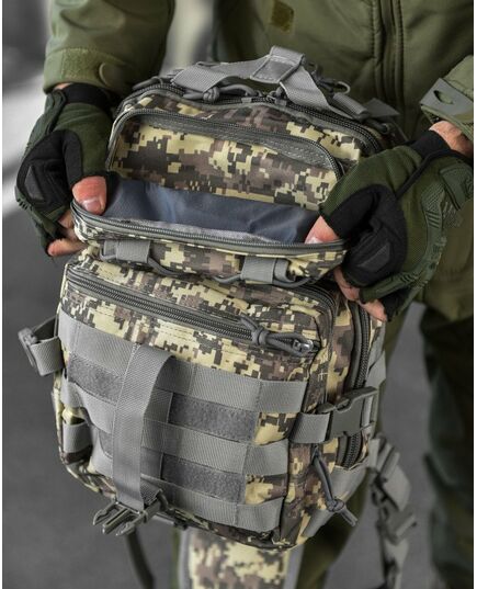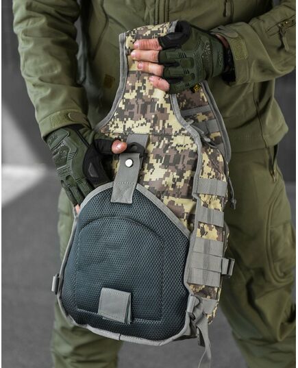 Сумка-рюкзак тактична військова A92 підійде як для реальних тактичних завдань військовослужбовців, так і для повсякденного використання в міських умовах. Розроблений таким чином, щоб максимально збільшити функціональність при переміщенні рюкзака зі спини на груди. Внутрішня частина тканини має надійне ПВХ покриття, яке перешкоджає проникненню вологи в рюкзак. Важливий компонент тактичного рюкзака – система швидкого скидання. Дозволяє за секунду скинути рюкзак, не знімаючи його через плечі. Це важливо при захопленні за рюкзак, при застряванні або при раптовій атаці. Швидко скинутим портфелем можна укрити голову від розриву гранати або блискавично перемістити корисне спорядження зі спини в область швидкого доступу. Матеріал стійкий до зносу, міцний на розрив, стійкий до ультрафіолетового випромінювання