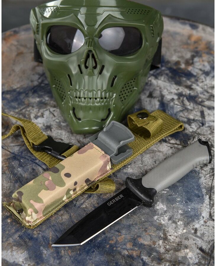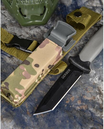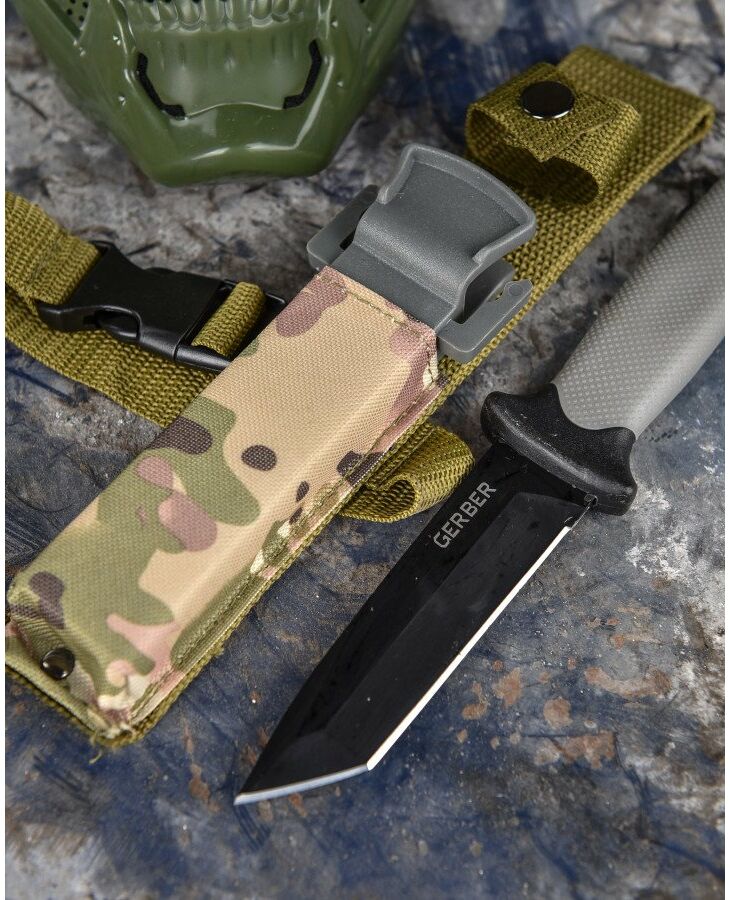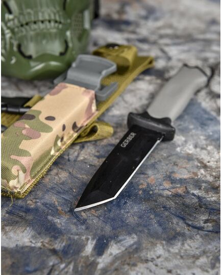 Тактичний ніж Gerber LMF II Infantry Fixed Black 26,9 см 1027863 – тактичний ніж із загальною довжиною 26.9 см. Ручка чорного кольору. Це обладнання для любителів виживання та активного відпочинку, але також знайде застосування в будь-яких умовах. Ніж з конструкцією full tang, зі сталі 420HC, окислений, частково зазубрене лезо, рукоятка з нейлону, армованого скловолокном, піхви з вбудованою точилкою, адаптовані під систему MOL, в нижній частині рукоятки склопідйомник, та отвір для прив'язки троса, в поручнях також 2 отвори.