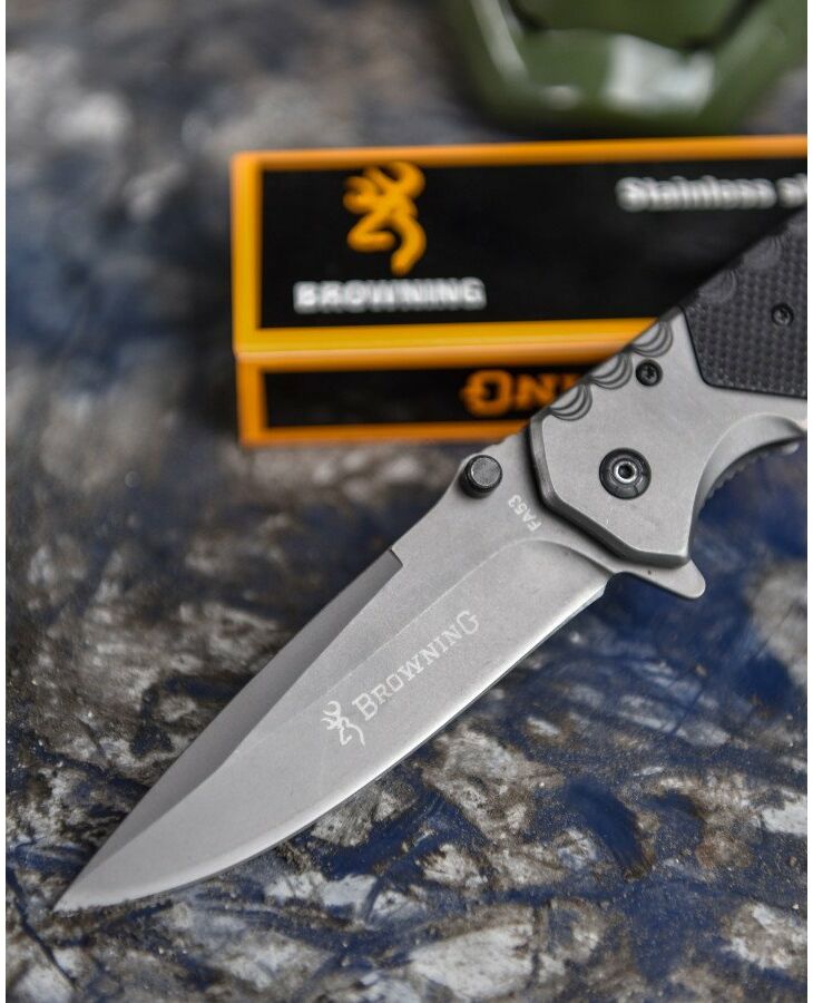 Ніж Browning FA52 - надійний складаний ніж, призначений для полювання, туризму та риболовлі. Лезо ножа виконано з нержавіючої сталі. Рукоятка ножа текстурована, завдяки чому зручно лежить у руці і не ковзає під час роботи. Загальна довжина ножа складає 21.5 см, а довжина леза 9 см. Довжина