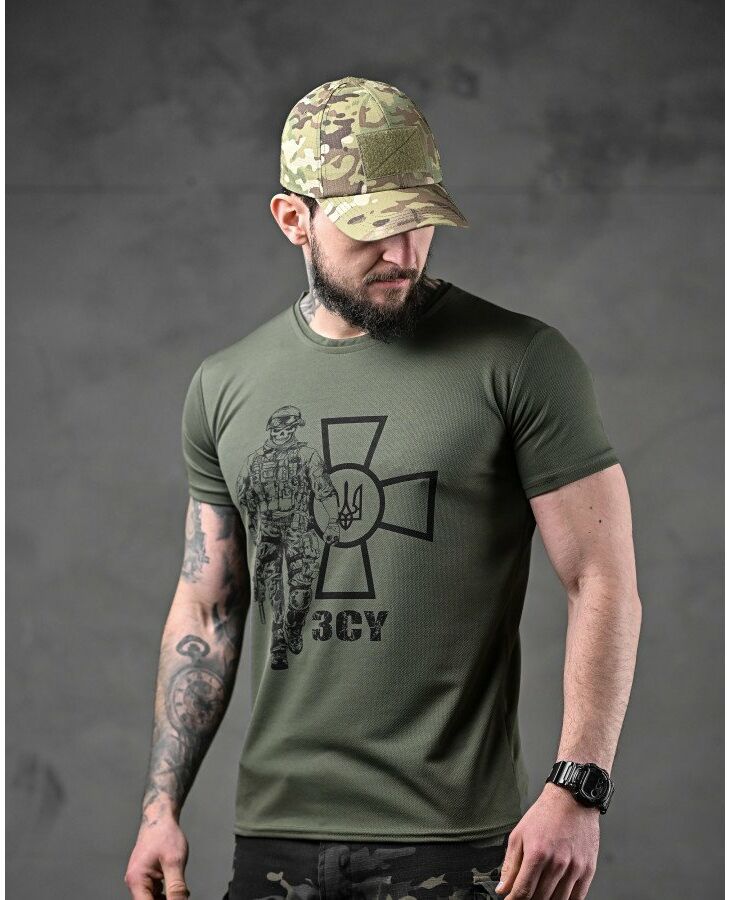 Футболка потовідвідна Bayraktar ЗСУ солдат олива ВТ0983