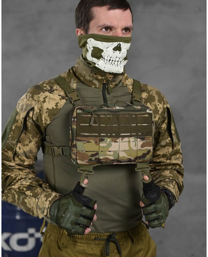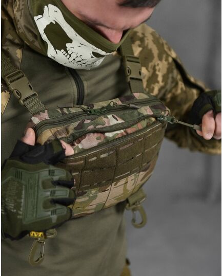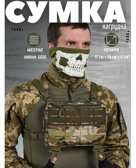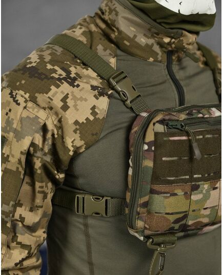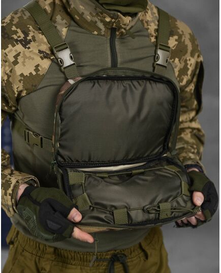 - Тактичний нагрудний рюкзак виготовлений з міцного нейлону 600d, дуже міцний, нейлонова підкладка, застібка-блискавка.