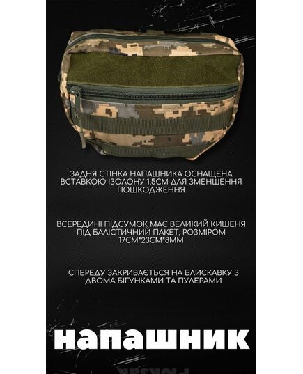 • всередині підсумок має великий кишеня під балістичний пакет, розміром 17см*23см*8мм