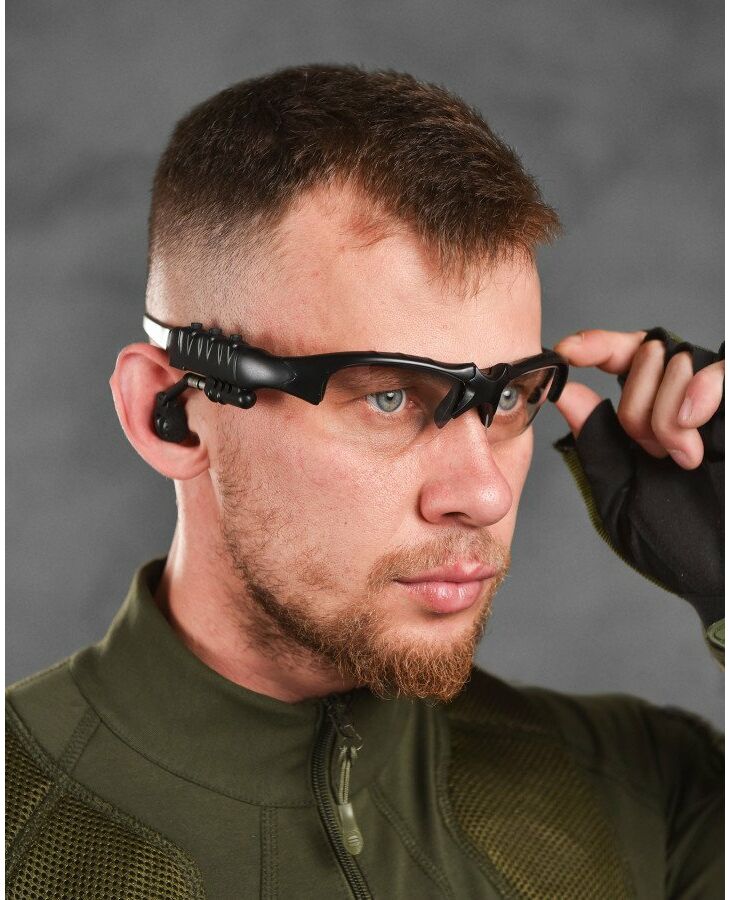 Новинка сезону – сонцезахисні окуляри з блютузом версії V 5.0 зі стерео фурнітурою. Радіус прийому блютуз з'єднання 10 м. Можливість прийняти або відхилити дзвінок, автоматичний набір останнього номера за допомогою окулярів, якщо телефон підтримує функцію TNS. Регулювання гучності. Вибір треку для відтворення. Час безперервного використання 12:00. Час використання у режимі очікування 100 днів. Температура використання 10 – 55 градусів С. Навушники телескопічні з поворотом на 270 градусів. Окуляри мають полімерний літій-іонний акумулятор 3,7 V 150 mAh. Є індикація розрядженої батареї - блимає синій світлодіод. Підключаються до всіх пристроїв, що мають блютуз з'єднання. Ви купуєте чотири в одному - якість і практичність, сонцезахисні окуляри і блютуз фурнітуру. Окуляри практичні у використанні - чи будете ви на роботі, на полюванні, на риболовлі, на відпочинку, їхати за кермом автомобіля, мотоцикла або велосипеда, займаючись спортом - це завжди зручно. Окуляри мають функцію мультипоінт - одночасне підключення до двох точок, слухати музику з одного смартфона і одночасно приймати телефонні дзвінки з іншого смартфона. Можна одночасно підключати блютуз з'єднання з автомобілем та блютуз з'єднання зі смартфоном. Окуляри мають змінні лінзи. Розмір однієї лінзи 57*36. Форма лінзи овал фігурний. Відстань між завушинами 140 мм. Довжина завушини 135 мм. Колір лінз жовтий, синій, коричневий. Особливістю цієї моделі окулярів є наявність у комплектації змінних лінз синього кольору поляризаційні, Лінзи при необхідності можна підняти вгору, не знімаючи з корпусу окулярів. Блютуз розміщений на завушинах - два навушники прикріплені з обох боків. На блютузі є три кнопки для регулювання.