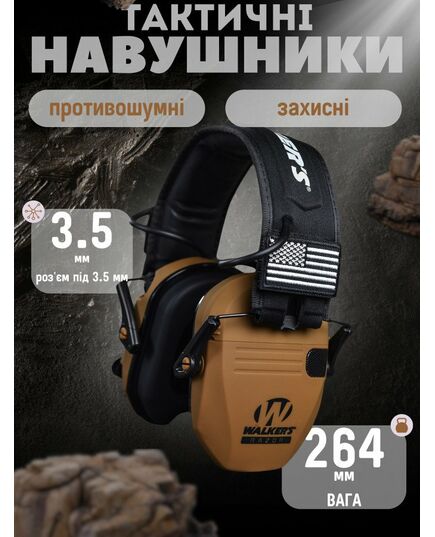 Активні навушники для стрільби WALKER'S RAZOR з пригніченням шуму до 23db.