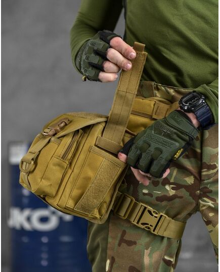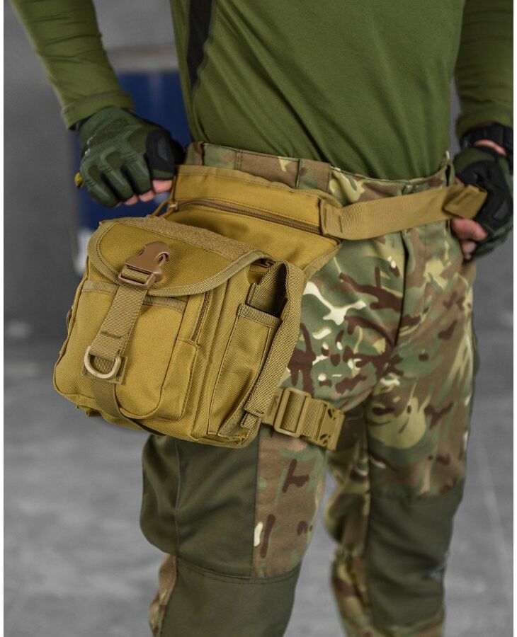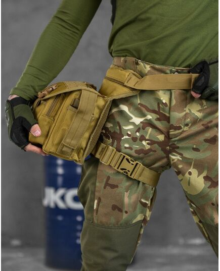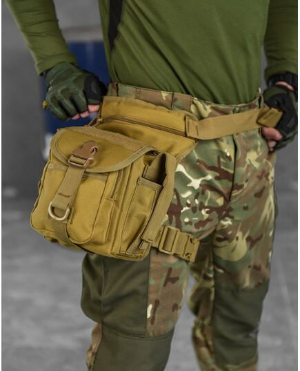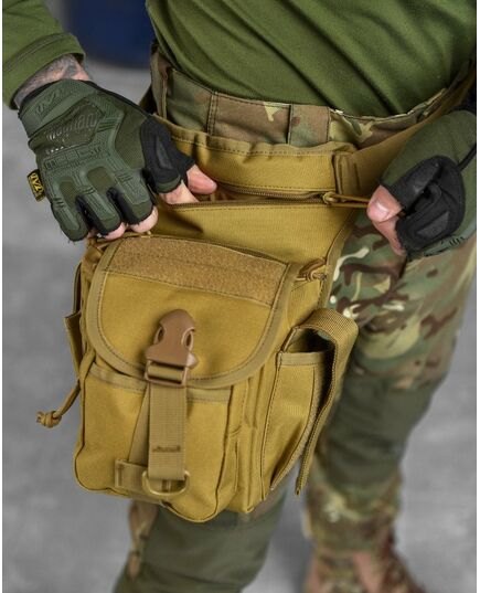 Поясна сумка з можливістю додаткової фіксації на стегні.