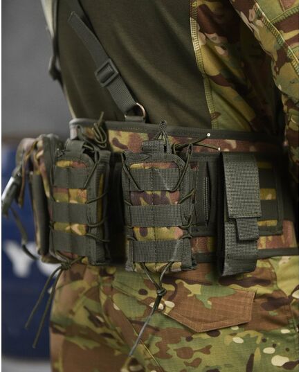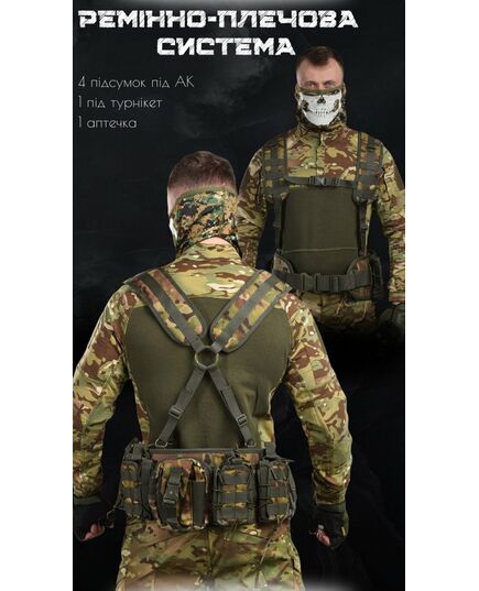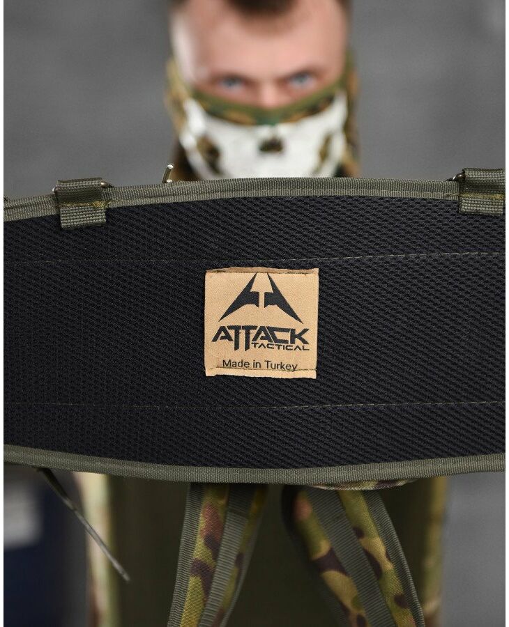 Рім'яно-плечова система Attack у зборі з рюкзаком, оснащена жорстким каркасом, що запобігає прокрутці пояса під навантаженням, забезпечуючи стабільність і зручність у використанні. Основний пояс довжиною 2 метри з фастексом забезпечує надійне та міцне кріплення системи, даючи вам впевненість у кожному русі.